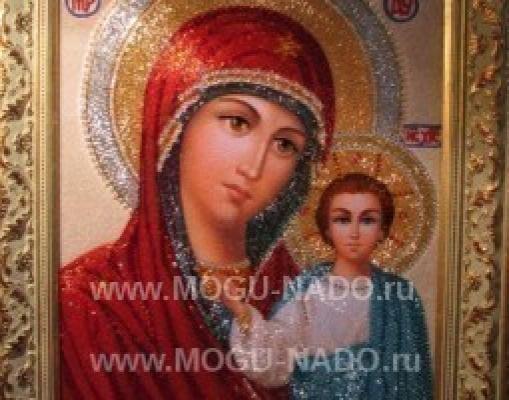Технические параметры: Икона Казанская, мозаика бисером. эксклюзив, авторское исполнение, весь материал высокого качества.Точное повторение невозможно. Цена зависит от размера иконы, от 6 тысяч за размер 20*30. Сделаю под заказ. Уход сухая кисть для сметания пыли.