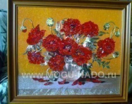 Описание: Картина " Маки" сделана в технике мозаика бисером и насыпная техника. Полностью авторское исполнение.