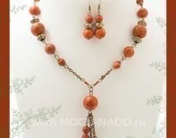 Состав: металлическая фурнитура, бисер, губчатый коралл. Длина подвески: 50 см + удлинитель (900 руб.), длина бус - 56 см (1400руб.), браслета - 26 см (390 руб.), серьги - 190 руб..