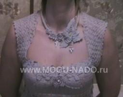 Описание: Колье связано из тонкого льна с лавсаном в комплект к льняному костюму, основа - вязаный бисерный шнур, использованы элементы ирландского кружева, бусы - искусственный жемчуг.