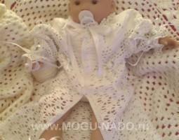 Описание: Крестильная рубашка для обряда крещения. Идеальное решение для мальчиков и девочек. Выполнена из мягкого детского хлопка и украшена атласными лентами и розами.