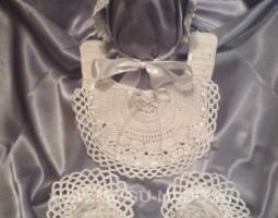 Описание: Предлагаю красивый комплект для таинства крещения. В комплекте: нагрудник, чепчик и пинетки.