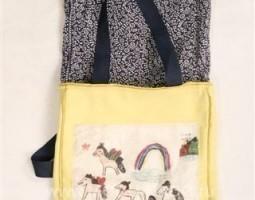 Описание: Веселые сумки с принтами рисунков из детского сада. Сделаны из драпа, серьезность которого разбавлена яркими и необычными подкладами и деталями.