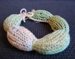 Можно носить и как бусы, и, как, браслет. Связанно спицами, начинено настоящим горохом (зеленым и желтым).Очень приятно на ощупь. Шуршит.
