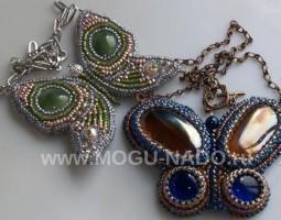 Описание: В некотором смысле неповторимые кулоны в форме бабочек. Выполнены в технике вышивки бисером