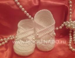 Нежные туфельки из хлопковой пряжи для самых маленьких ножек в ответственный день крещения!