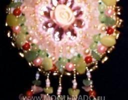 Камни: коралл, хризопраз, оникс, розовый кварц, жемчуг + бисер, и цветное стекло. Литоамулет энергетически заряжен Мастером Рэйки, в него вшит рунический ряд на прилечение любви в жизнь