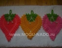 Описание: Клубнички- прихватки из шерсти и синтетики, вторые можно использовать как подставки под горячее. Вяжу только из новых ниток.