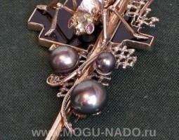 Описание: Золото. Черный агат.Черный жемчуг. Топаз, циркон.Рубины. Бриллианты.