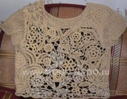 Описание: Связана в технике ирландского кружева из ниток х/б и вискозы с люрексом. Размер 54-56.