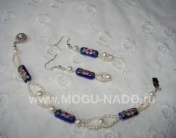 Описание: Нежнейший комплект... Подойдет для молодой девушки и любимой женщины.Насыщенный синий цвет эмалевых бусин ручной работы и переливы мелких речных жемчужин создают красивый контраст, притягивают взгляд...Хочется смотреть на это украшение снова и снова...