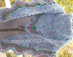 Описание: Модный шарф-косынка, выполнен из шерстяных ниток спицами , отделка крючок..