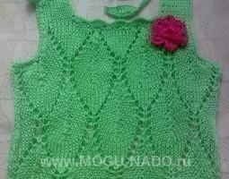 Описание: Летняя тонкая хлопковая майка-топ для девочки 26-30 размера на завязках-листикахю Длина топа от 33 см.Свяжу на заказ нужного размера, цвета.