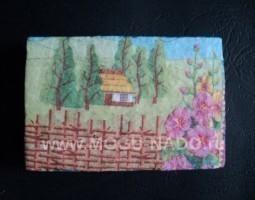 Описание: Магнитик "Батькiвська хата" (декупаж на пенопласте)