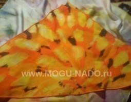 Описание: Косынка в технике горячего батика, подходит более как бандана из-за жесткости ткани (одна из первых работ). размер 50*50