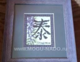 Описание: Вышивка крестиком, иероглиф «Процветание» (49*60 крестов, 10 цветов, мулине Гамма), размер в раме 19.5*21 см.