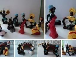 Описание: Ручная работа из глины. 8 фигурок - Вождь, шаман, воин, разводящий огонь, африканка с кувшином, африканка с ребенком, фриканка играющая на там таме, танцующая африканка. Самый высокий - шаман - 11,5 см, самая низная - молодая мама - 6,5 см.