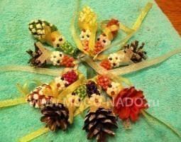 Описание: Такие уникальные Новогодние елочные игрушки - это прекрасный предновогодний подарок для родных, друзей, сотрудников, работников, клиентов, партнеров и любимых людей. Размер: 5 см х 3 см х 3 см. Материалы: шишки, бисер.