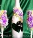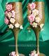 Описание: Свадебные бокалы и бутылка украшенная лепными цветами из пластики , роспись витражными красками.