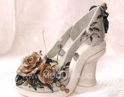 Описание: Туфелька- игольница из фарфора ручной лепки . роспись золотом.