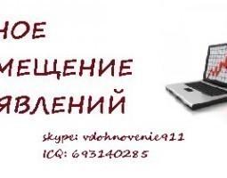 Описание: Ручное размещение объявлений на интернет-досках. Сэкономим выше время и здоровье. От 50 до 250 объявлений за минимальные сроки. Быстро, качественно ответственно. Ждём ваших заказов друзья. Цена от 7 рублей за объявление. Не экономьте - попробуйте!