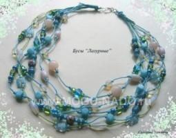 Описание: Очень нежные, очень летние, очень позитивные - бусы "Лазурные", выполнены в 6 рядов и оформлены очень симпатичными бусинами нежных оттенков.