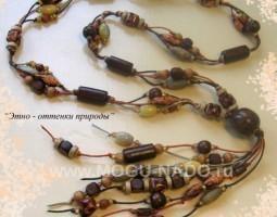 материал: Вощёный шнур трёх оттенков; деревянные бусины разных форм, оттенков и размеров; стеклянные, пластиковые бусины, авантюрин, чешский бисер