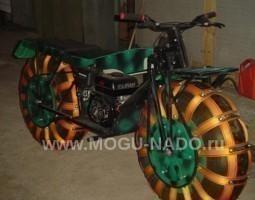 Описание: Самодельный мотовездеход. Полный привод. В разобранном виде входит в багажник легкового авто.Можно хранить на балконе или в клаловке, возить в багажнике. На воде не тонет.