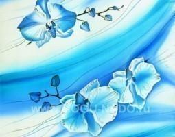 Шейный платок "Бирюзовые орхидеи", холодный батик