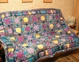 Описание: Одеяло выполнено в технике лоскутной мозаики из хлопчатобумажных и смесовых тканей. Размер 150х200 см.