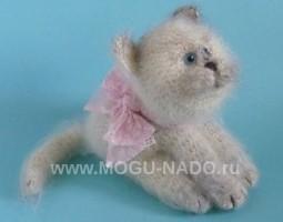 Описание: Всем любителям кошек посвящается... Маленький пушистый комочек. Сидит и выпрашивает молочка. А лучше мороженку :). Связан крючком. Размер ок. 19 см в длину (без учета хвостика) и 17 см в высоту. Пряжа - мохер (50%), наполнитель - синтепон. Тонирован акриловыми красками по ткани.