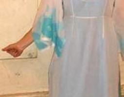 Описание: Платье собственного дизайна и кроя. Дипломант фестиваля фэнтезийного костюма. Состоит из нижнего сарафана и верхней шифоновой туники с откидными рукавами. Аппликация шифоном.