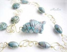 Описание: Морские тайны таит в себе это ожерелье....все элементы сделаны мною вручную, включая фурнитуру...термопластика, проволока латунь.