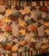 Лоскутное одеяло выполнено в технике лоскутной мозаики из разообразных хлопчатобумажных и смесовых тканей в осенней цветовой гамме. Размер
