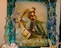 Описание: РАМКА ДЛЯ ФОТО, сделана из лент и бисера