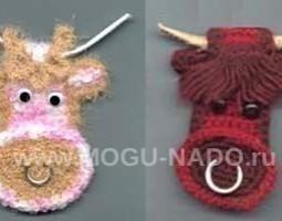 Описание: Для изготовления бычка необходимо небольшое колечко, 2 пуговицы (бусины), плотная бумага, нити двух цветов.