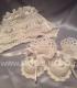 Описание: Крестильный комплект в английском стиле, чепчик и пинетки-туфельки.