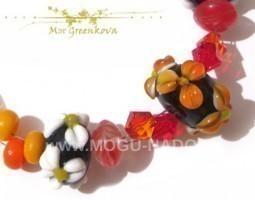 Описание: МаАтериалы: Бусины Lampwork (ручной работы), кристалы Сваровски, чешское стекло, ювелирный тросик, фурнитура под медь