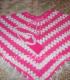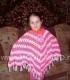 Пончо выполнено крючком из полушерстяной пряжи. Использовано два цвета: малиновый и белый.