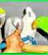 Попугаи большие, средние, малые - виды. Канарейки. Клетки,