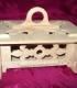 Описание: Шкатулка умещается на ладошке. 4 х 10 см (без учета выступающего декора). Материал - фанера. Разбирается. Собрана без клея.