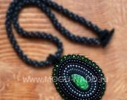 Вставка – яшма. Длина жгута ок. 60 см, размер кулона 5х3,5 см.