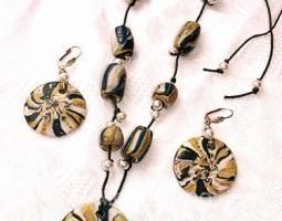 Описание: Колье и серьги из фарфора ручной лепки. роспись золотом.