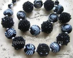 Описание: Маленькие, но одновременно торжественные и богатые, завораживающие игрой контрастных линий, бусы "Черно-белая феерия" - станут любимым украшением в вашем гардеробе. Длина бус - 42 см