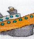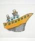 Описание: пароход - теплоход - океанский лайнер яркого рыже-желтого цвета с веселыми голубыми огоньками в каютах