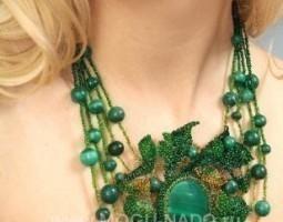 Описание: Малахитовое колье.Материал:чешский бисер,малахит(натуральный камень).Техника:авторская.