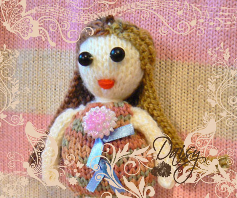Подрастает маленькая дочка, и ей уже не интересны безликие погремушки. Мы уже изучаем глазки, ротик и т.п. Это натолкнуло меня на идею создания вот такой обаятельной девушки Бусинки