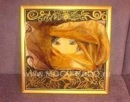Описание: картина нарисована гуашью, лицо девушки обрамлено тканью