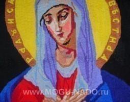Описание: Вышитая икона "Умиление" в застекленной раме (итальянский багет).Ручная работа. Размер без рамы 75х50см.