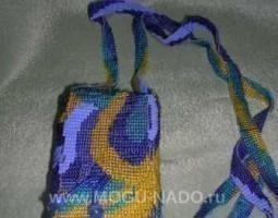 Описание: Сумочка для мобильного телефона, выполненная по авторскому эскизу из бисера желтого, голубого и трех оттенков синего цвета. Сумочка снабжена длинной (106 см.) ручкой, что позволяет носить ее на плече и имеет размер 8,5х3,5х5 см. В крышке имеется выемка для антены.
